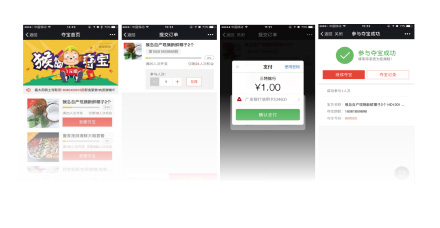 1.参与夺宝/2.提交订单/3.微信支付/4.夺宝成功