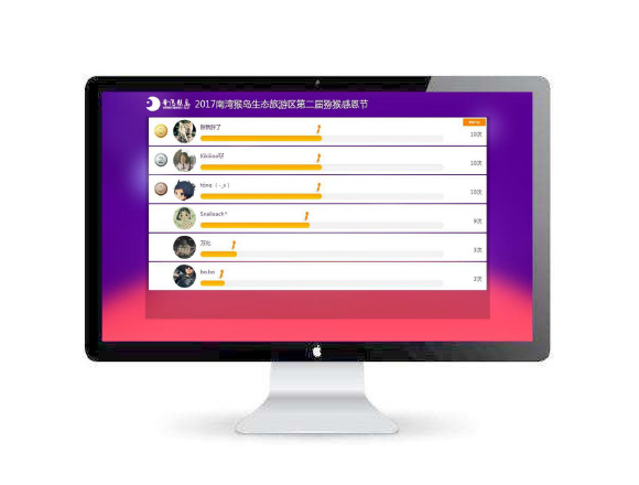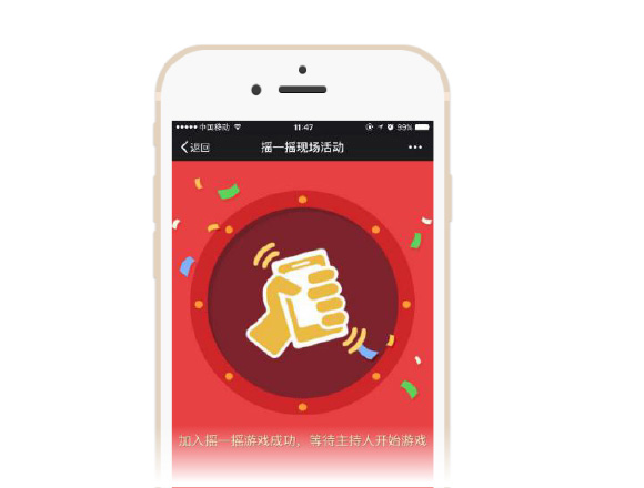 游客扫描即可参加摇一摇抽奖活动,屏幕上会实时显示手机摇动次数,根据摇动快慢屏幕排列出前10名用户在大屏幕上,在最短时间内摇到设定次数游戏便结束。